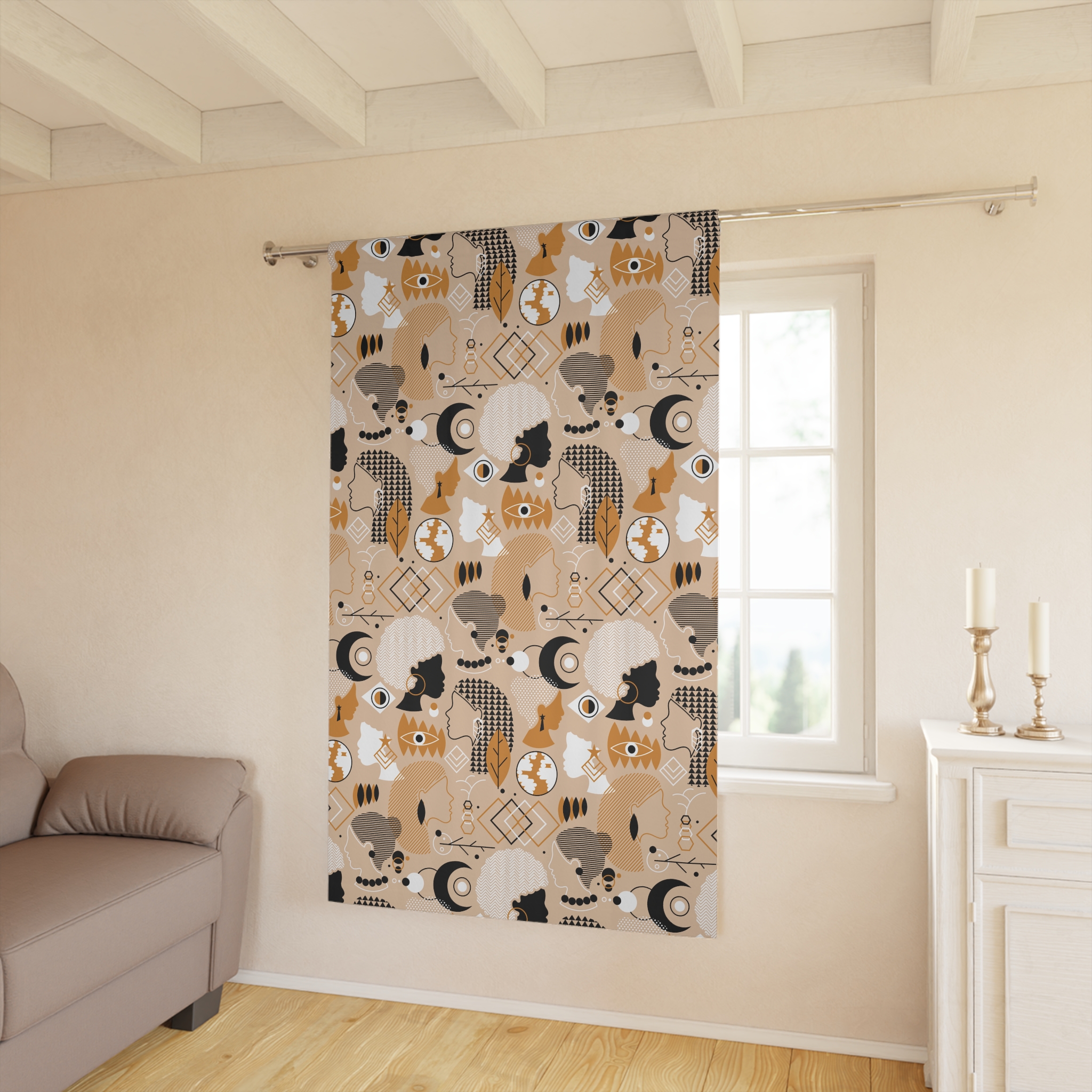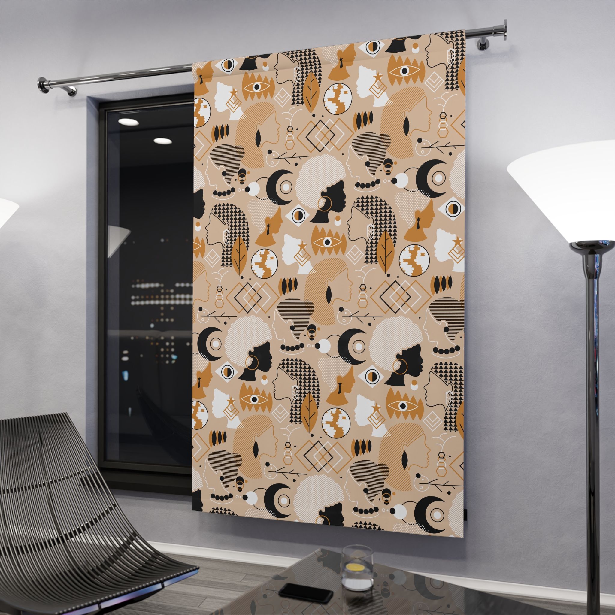 Warm, sculptural, and quietly modern — this blackout window curtain brings a soft desert palette and playful abstract shapes to your room. Layers of ochre, taupe, cream and charcoal form organic silhouettes, moons, and geometric accents that catch the eye without shouting. The medium-weight polyester hangs with a gentle drape, blocks most daylight, and keeps a calm, cozy atmosphere for reading corners, nap time, or late-night movie sessions. Threaded through a 4″ rod pocket for easy hanging, the single-piece panel fits most standard windows and adds texture to minimalist, boho, or mid-century inspired interiors. It feels like a curated find: familiar, a little artistic, and quietly comforting in everyday moments and cozy gatherings.