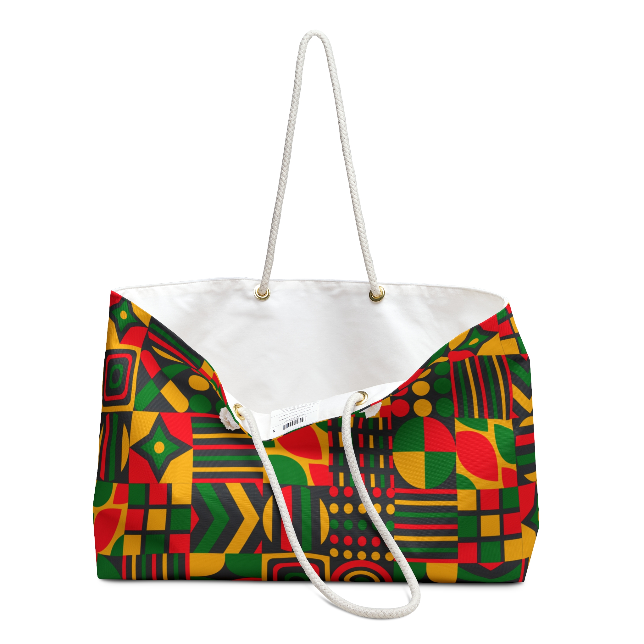 This bold, spacious weekender brings color and rhythm to short escapes. The vivid concentric mandala in warm golds, greens, and maroons sits on a durable spun polyester canvas that resists wrinkles and keeps the print crisp. A cream-lined interior with a T-bottom gives structure and room for clothes, a toiletry kit, and a pair of shoes. Long cotton rope handles threaded through gold-tone grommets feel comfortable over the shoulder and add a nautical, handcrafted touch. Lightweight yet sturdy and assembled in the USA from globally sourced parts—carry it to the farmers’ market, an overnight road trip, or a relaxed seaside weekend and let the pattern do the talking.