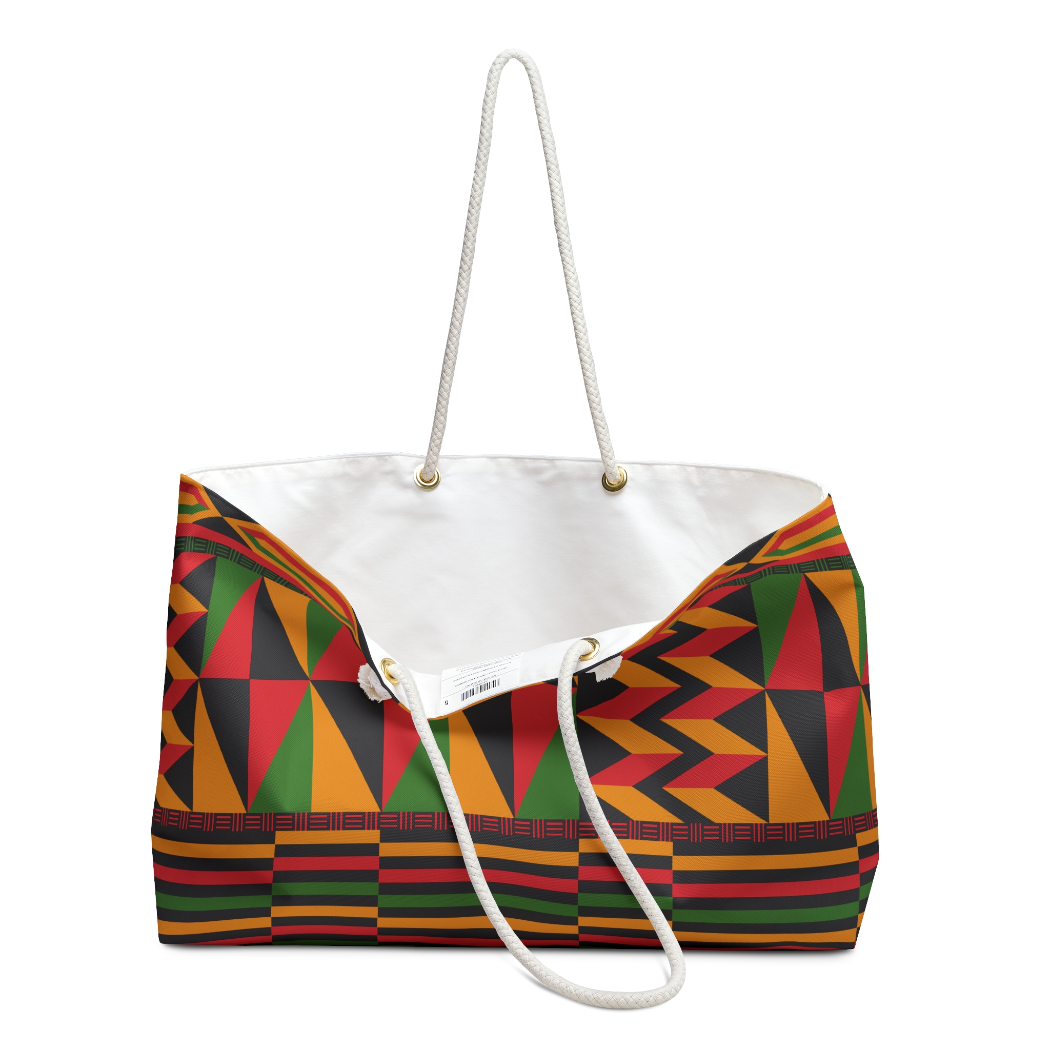 Carry a little gallery with you. This roomy Weekender Bag holds everything from sketchbooks and a light sweater to market finds, with a soft cream-lined interior that keeps treasures protected. The spun polyester exterior resists wrinkles and keeps bold prints vibrant, while the knotted cotton rope handles slip easily over the shoulder for hands-free wandering. A structured T-bottom gives the bag shape and stability, so it stands upright when you unpack — great for seaside strolls, art fairs, or slow weekend getaways. Each bag is assembled in the USA from globally sourced parts and comes with a subtle size tolerance, making it feel uniquely handmade.