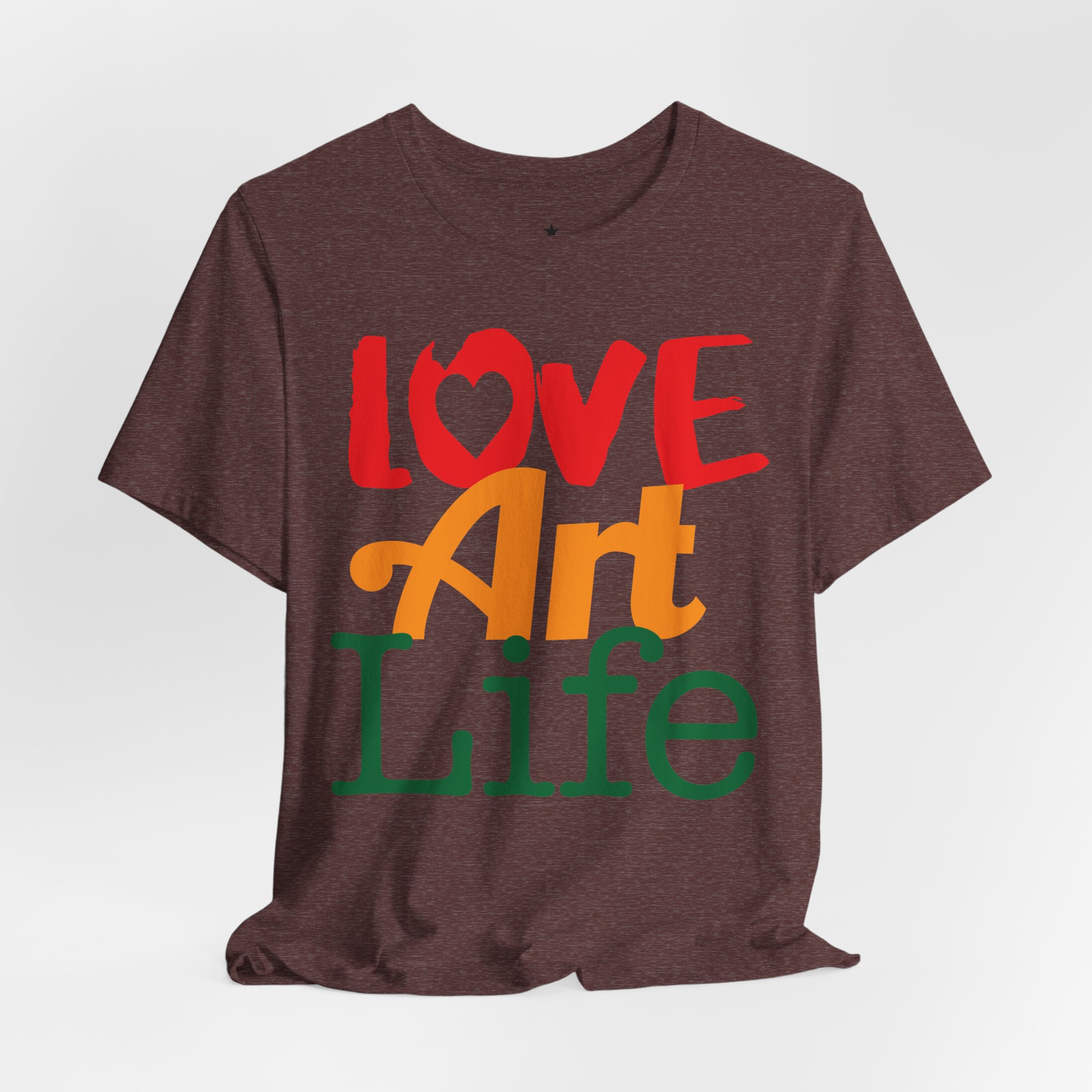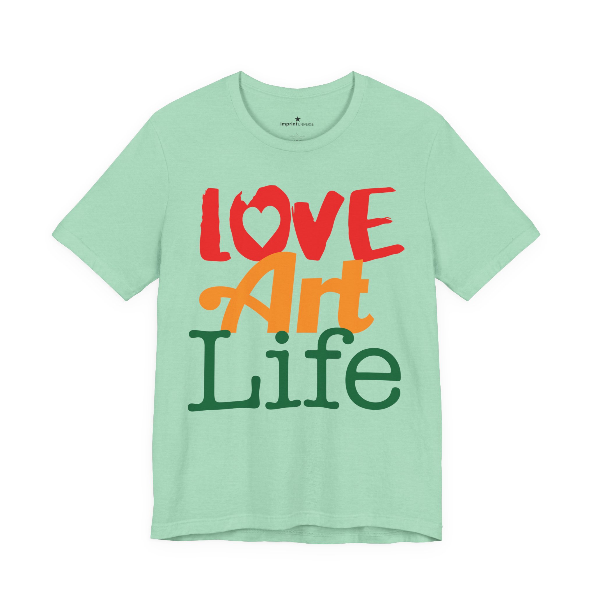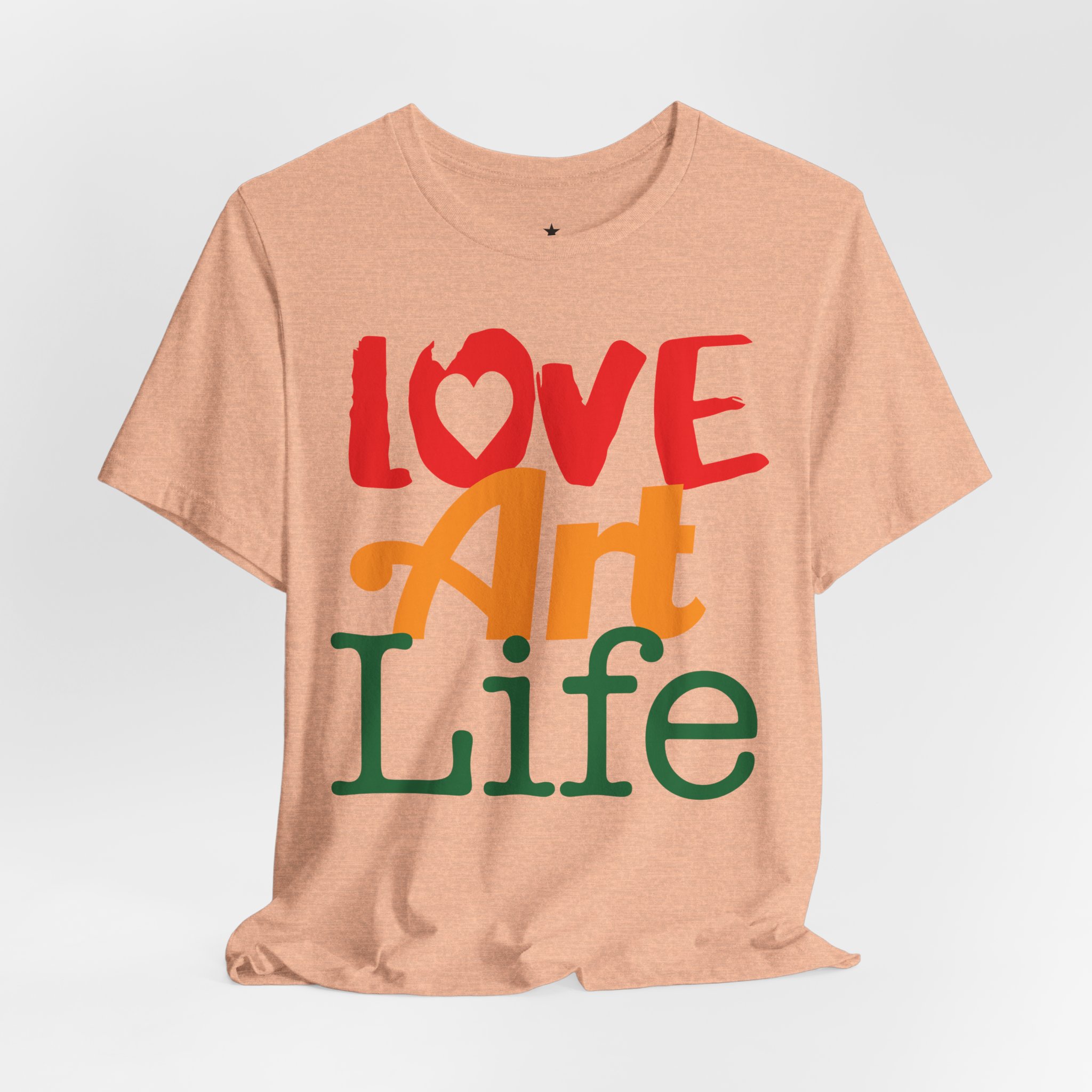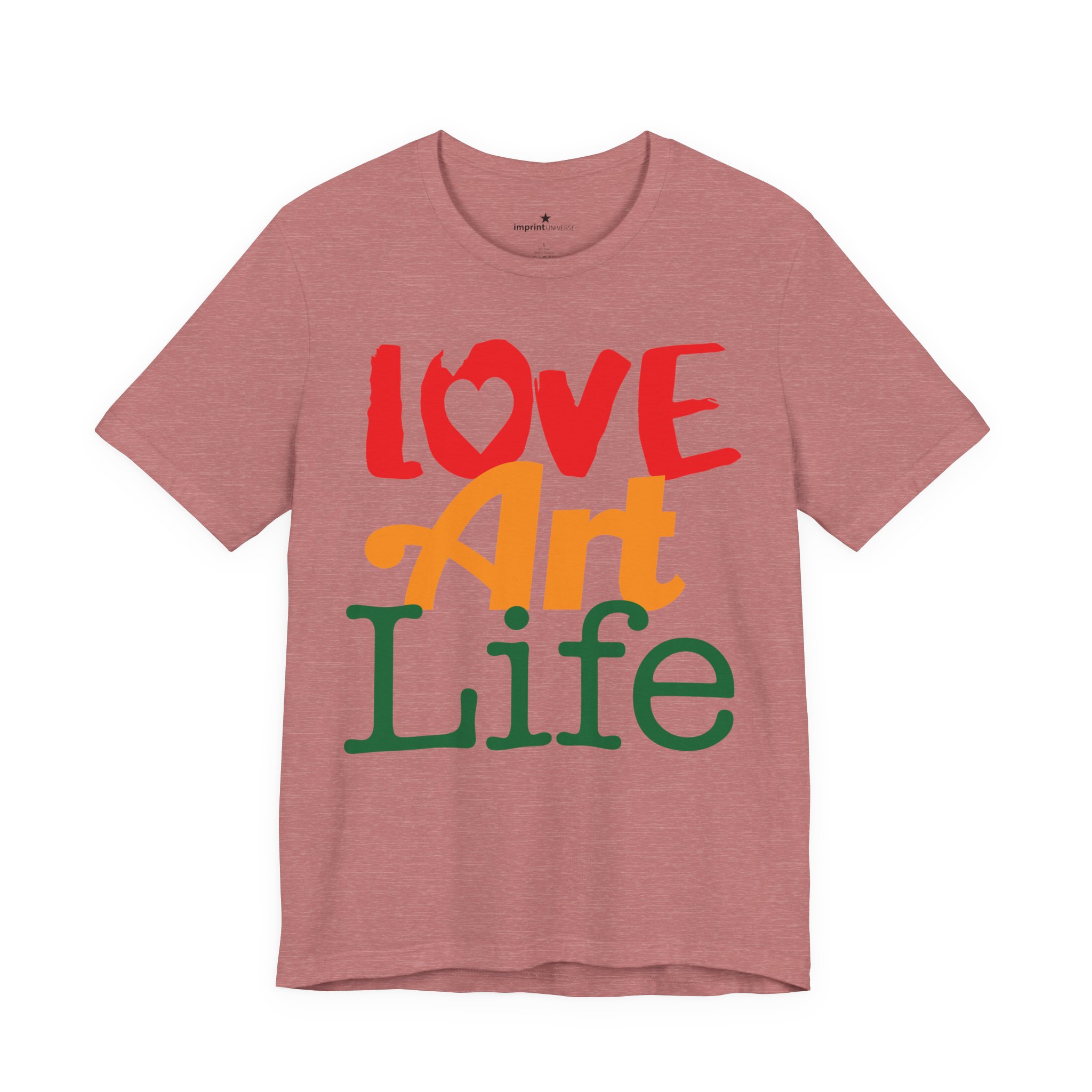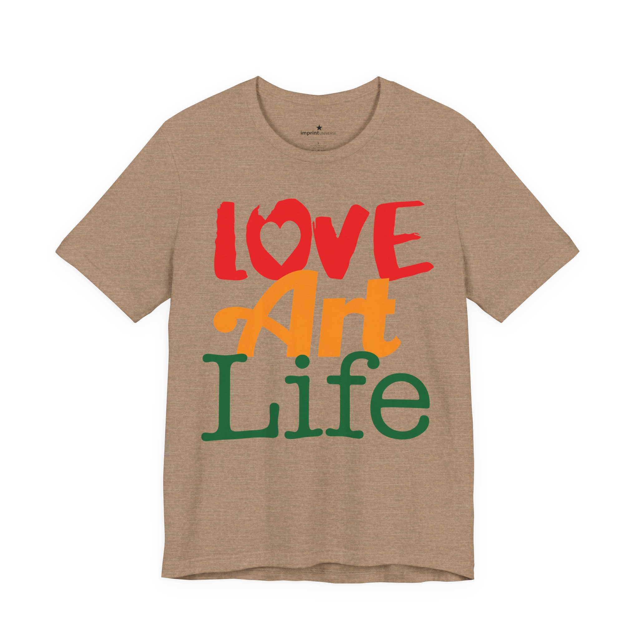This lightweight jersey tee wears like a warm conversation—soft, breathable, and written in color. Bold hand-lettered type spells out Love, Art, Life in playful, sun-warmed hues that feel like a studio morning: paint-stained hands, coffee at the easel, and music in the background. The retail cut keeps the silhouette clean for layering under jackets or wearing solo during gallery visits, craft markets, and casual meetups with fellow makers. Thoughtful details—soft Airlume combed cotton, tear-away label, ribbed collar, and reinforced shoulder tape—mean it moves with you through long days of creating without fuss. Ethically produced and REACH certified, it’s made to be lived in, washed, and worn again as you keep showing up for the work you love.