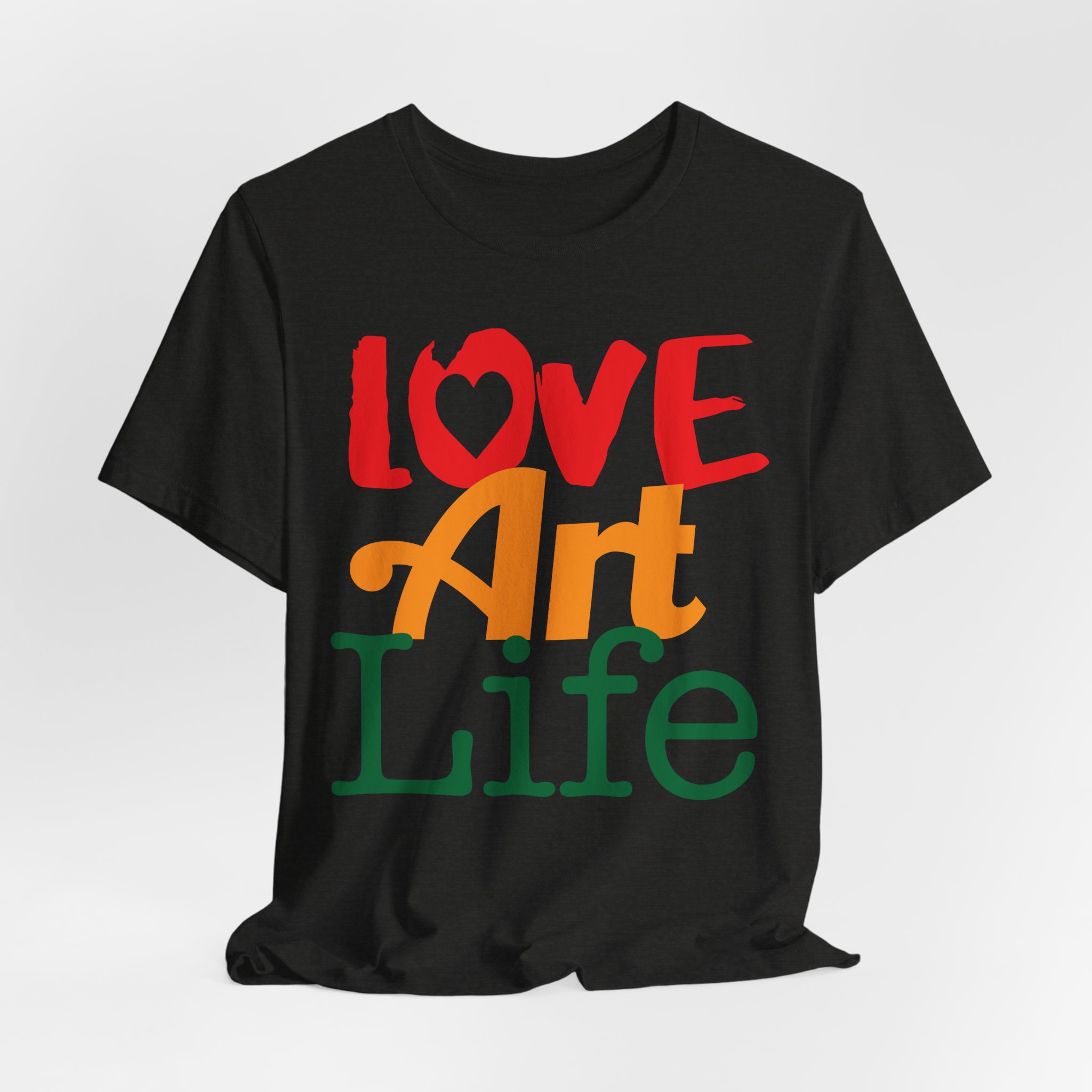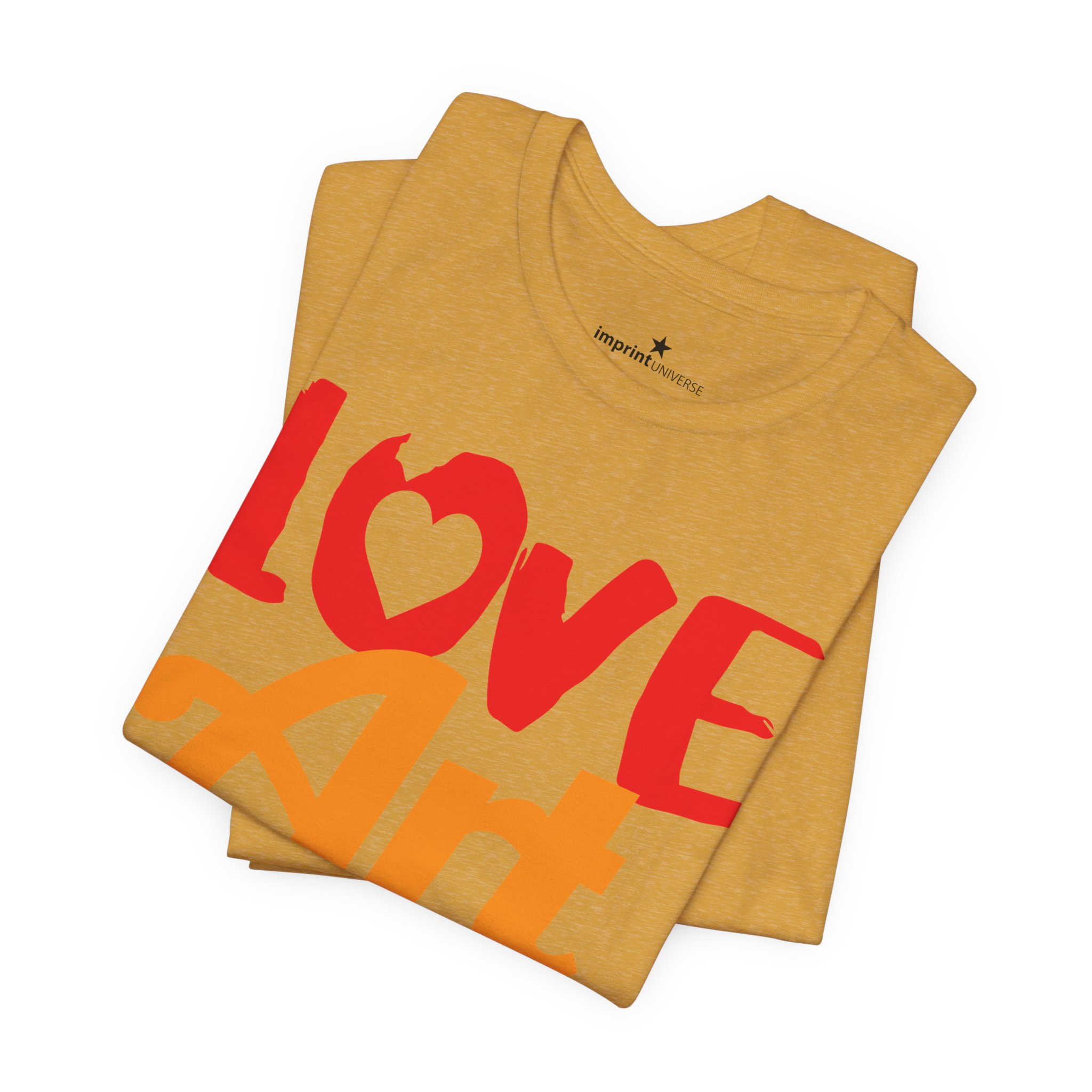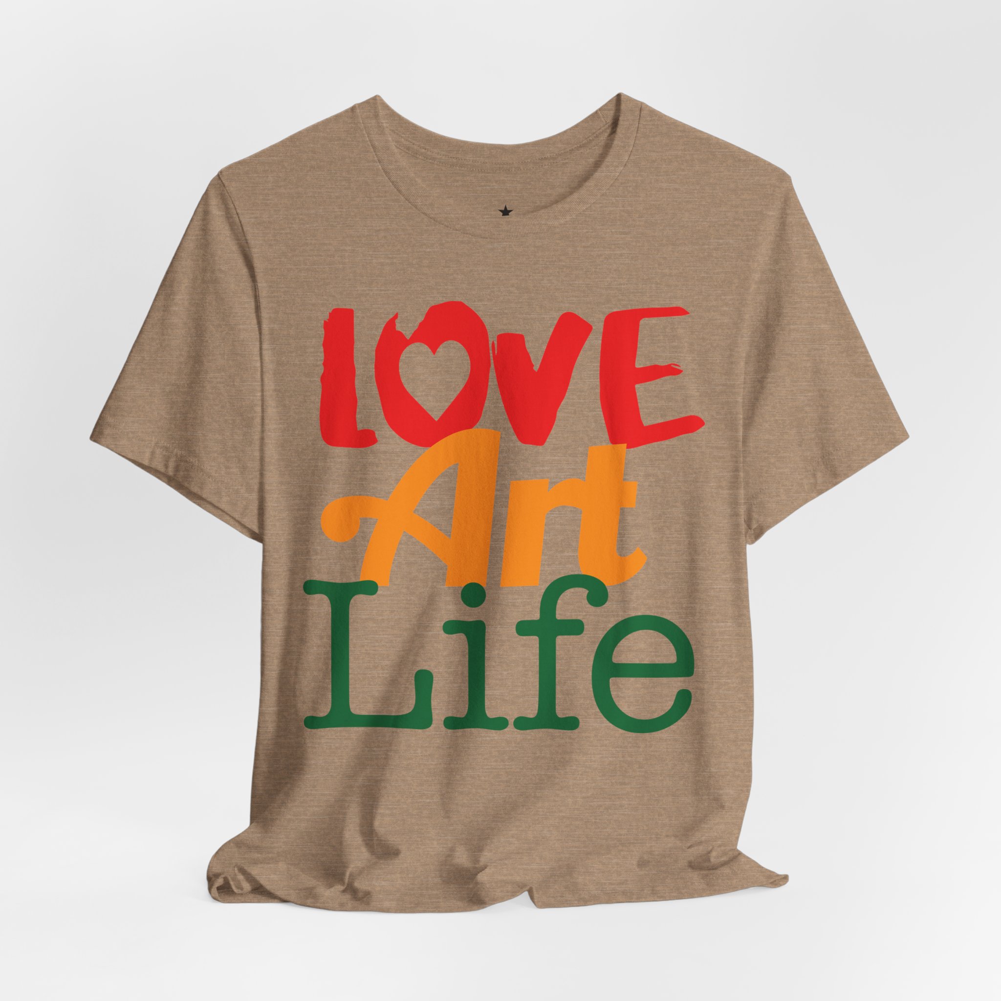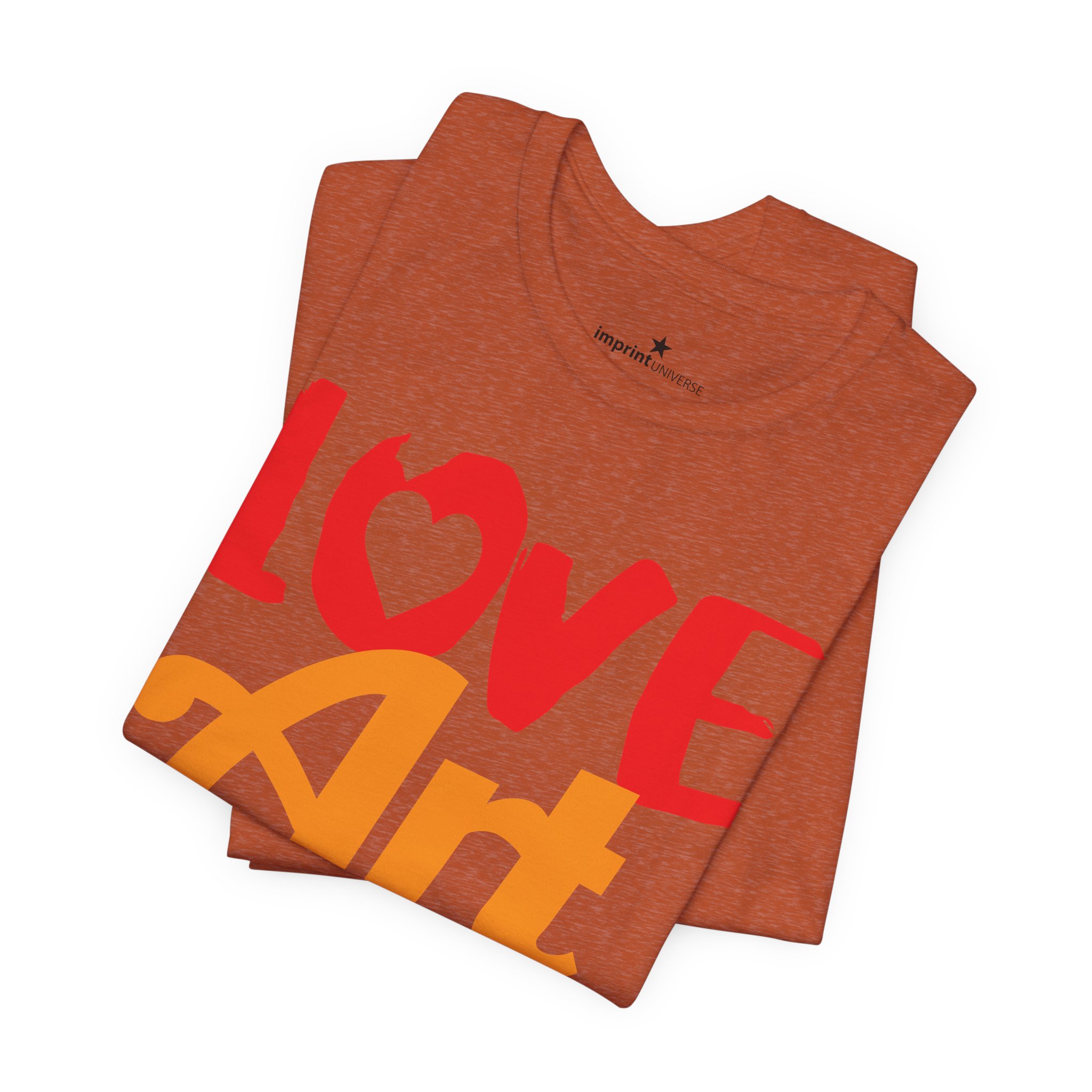This lightweight jersey tee wears like a warm conversation—soft, breathable, and written in color. Bold hand-lettered type spells out Love, Art, Life in playful, sun-warmed hues that feel like a studio morning: paint-stained hands, coffee at the easel, and music in the background. The retail cut keeps the silhouette clean for layering under jackets or wearing solo during gallery visits, craft markets, and casual meetups with fellow makers. Thoughtful details—soft Airlume combed cotton, tear-away label, ribbed collar, and reinforced shoulder tape—mean it moves with you through long days of creating without fuss. Ethically produced and REACH certified, it’s made to be lived in, washed, and worn again as you keep showing up for the work you love.