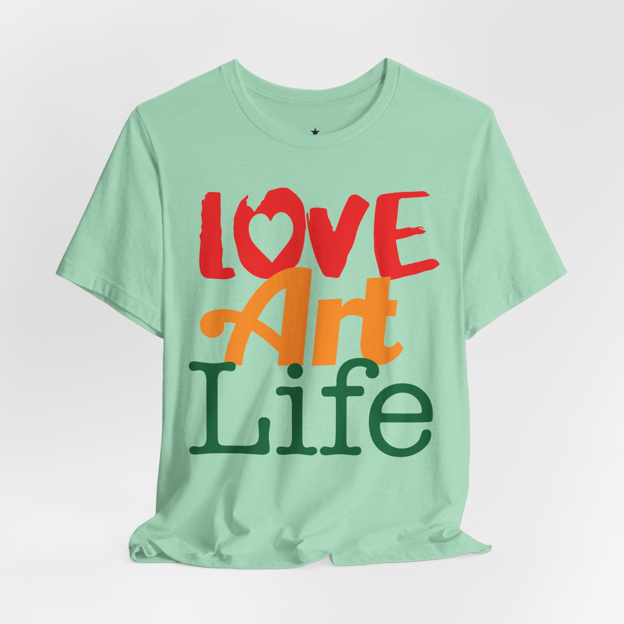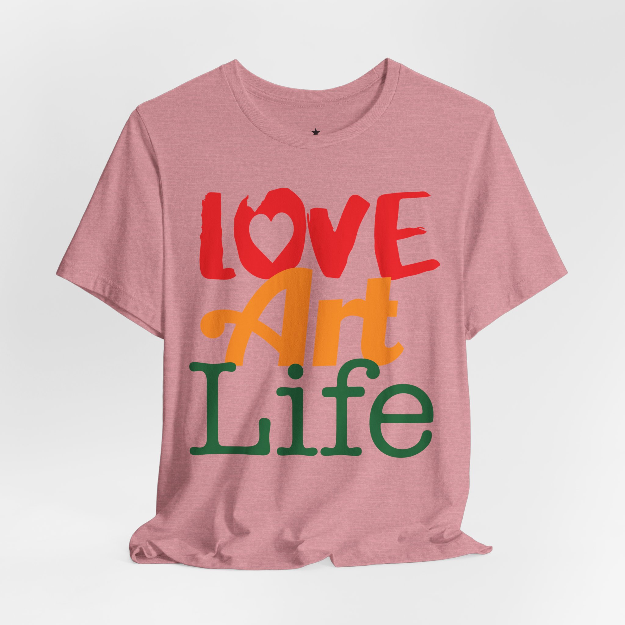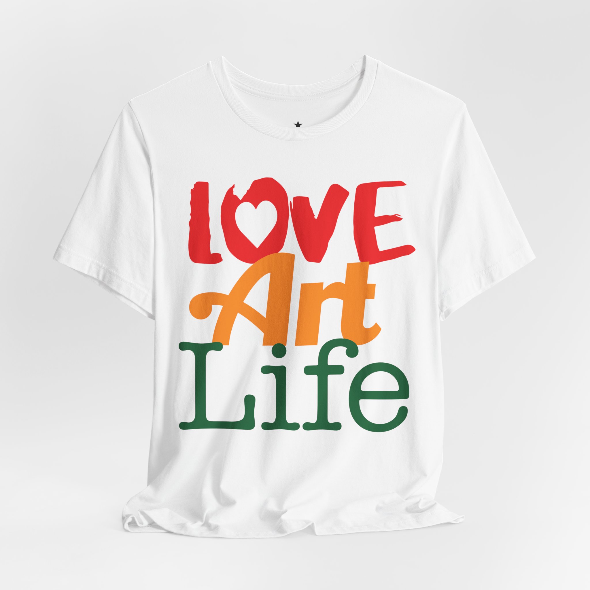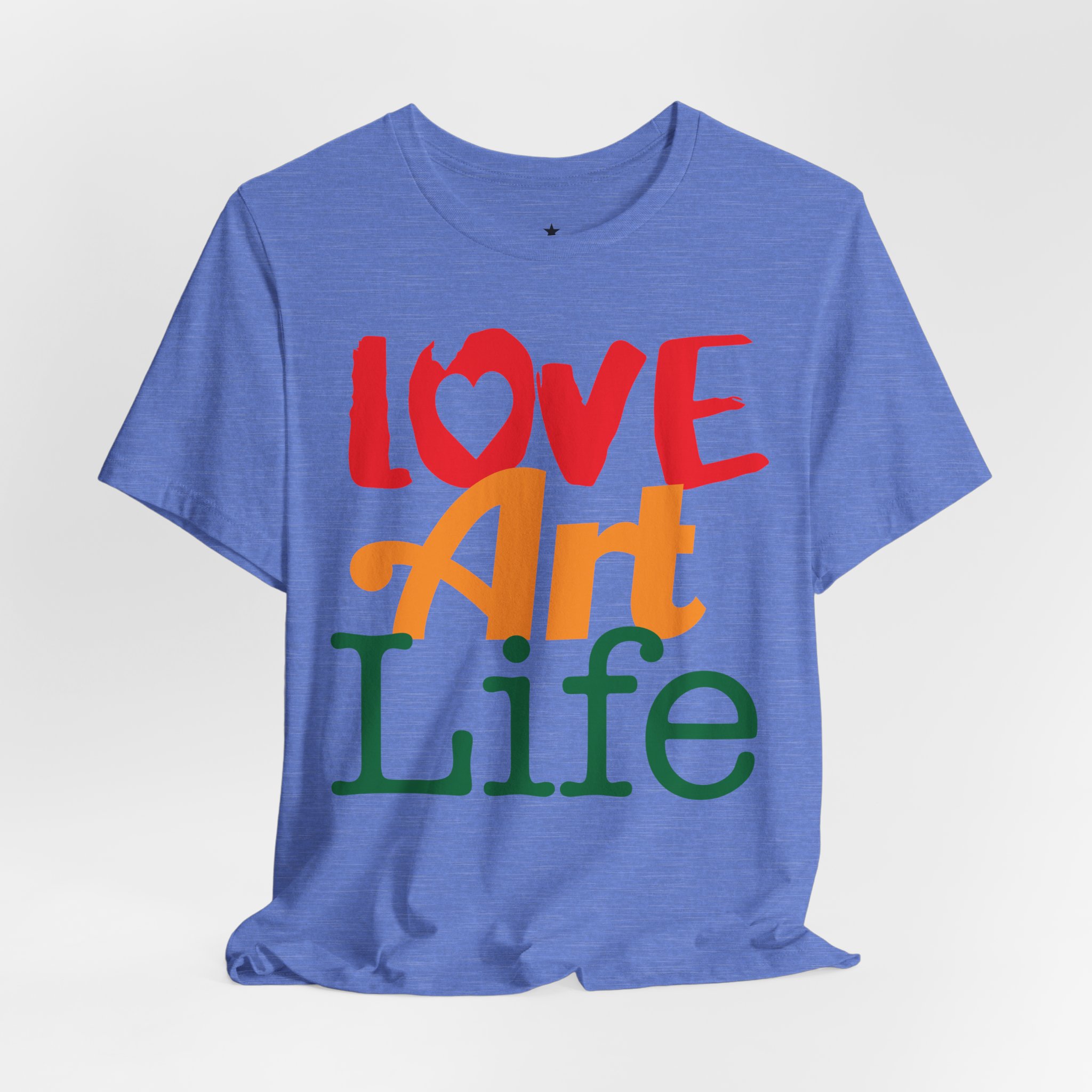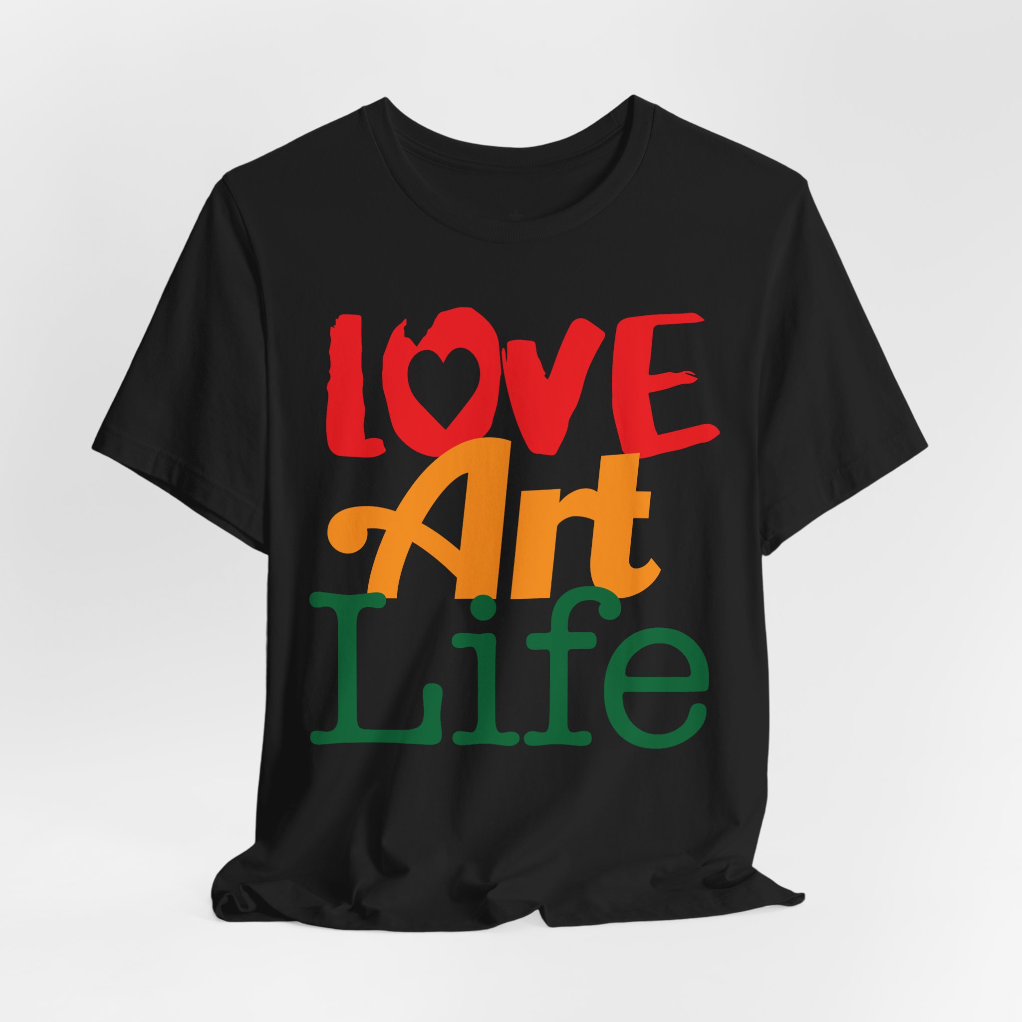 This lightweight jersey tee wears like a warm conversation—soft, breathable, and written in color. Bold hand-lettered type spells out Love, Art, Life in playful, sun-warmed hues that feel like a studio morning: paint-stained hands, coffee at the easel, and music in the background. The retail cut keeps the silhouette clean for layering under jackets or wearing solo during gallery visits, craft markets, and casual meetups with fellow makers. Thoughtful details—soft Airlume combed cotton, tear-away label, ribbed collar, and reinforced shoulder tape—mean it moves with you through long days of creating without fuss. Ethically produced and REACH certified, it’s made to be lived in, washed, and worn again as you keep showing up for the work you love.